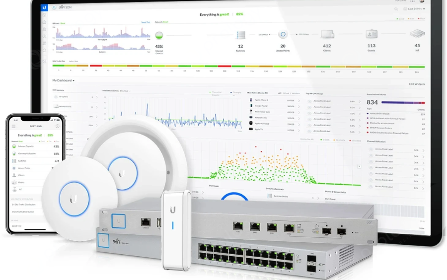 Centralized Management: The UniFi dashboard offers real-time monitoring of device health, user activity, and bandwidth usage.
